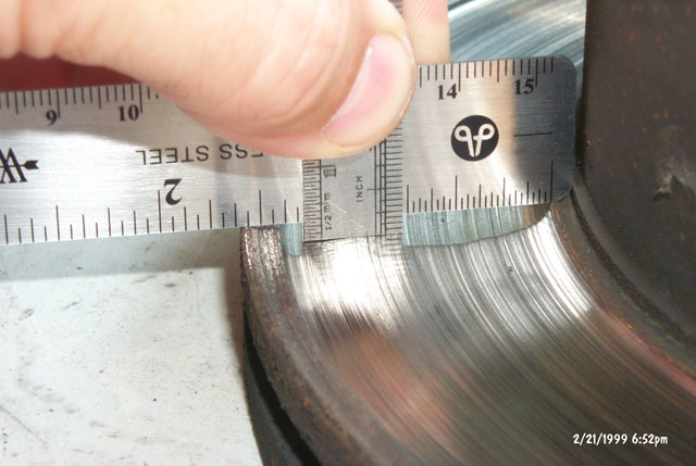 Left outside surface. Another 2.5mm ridge, making the rotor at least 5mm undesize. Porbably more - I didn't measure the actual thickness at the edge.